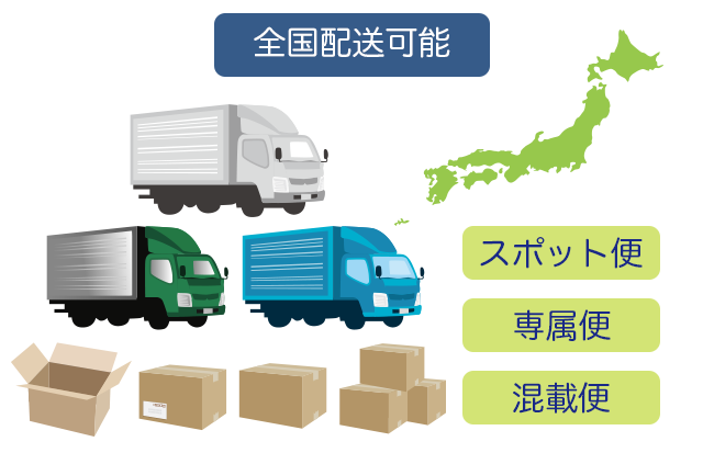 全国配送を可能にし、スポット便、混載便、専属便とご要望に対応しています。